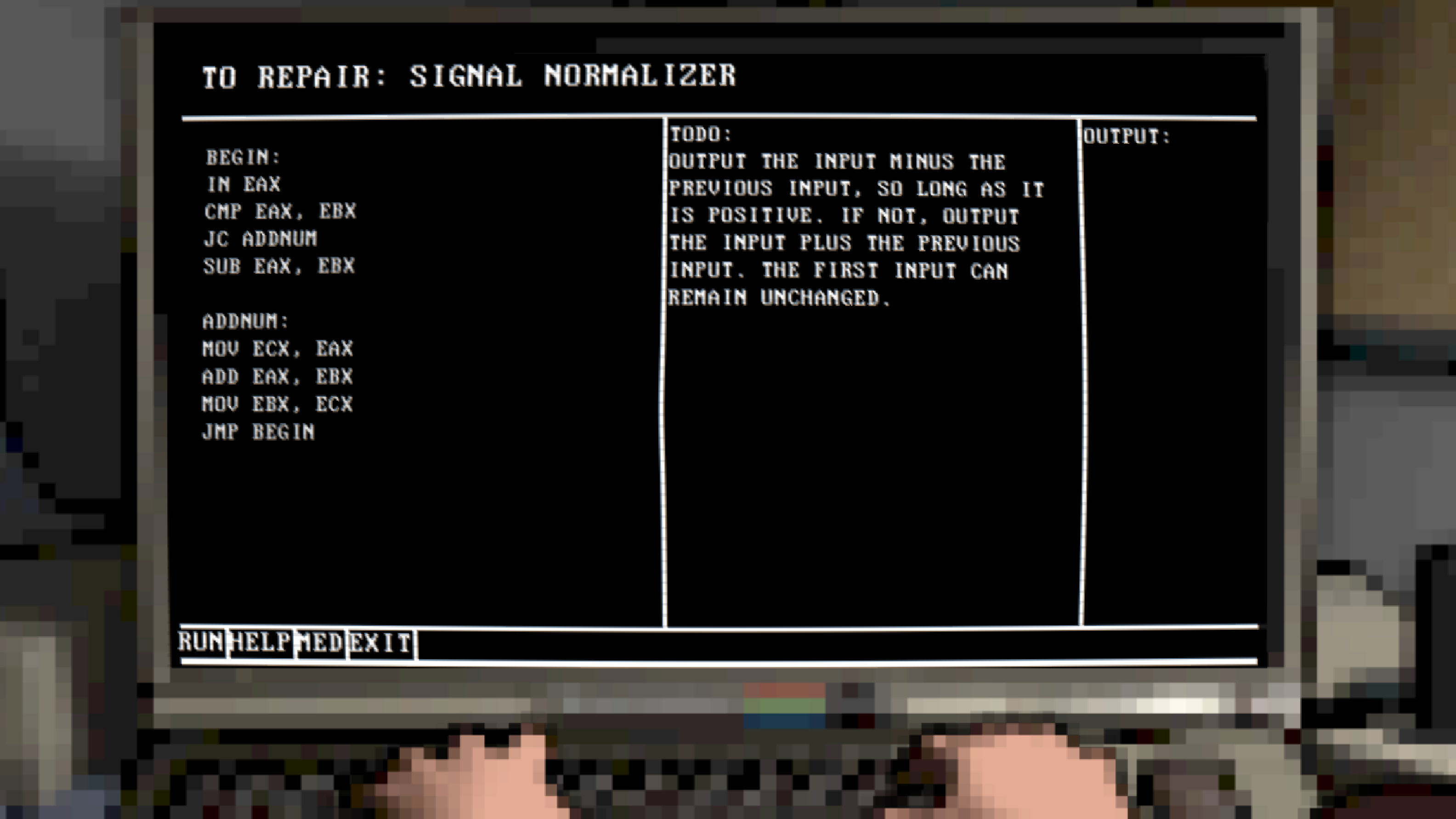 Your boss wants your report done NOW- but your computer's been completely corrupted! Can you repair the necessary systems before you're fired? To fix it, you'll need to know some assembly- good thing you saved that old user manual!